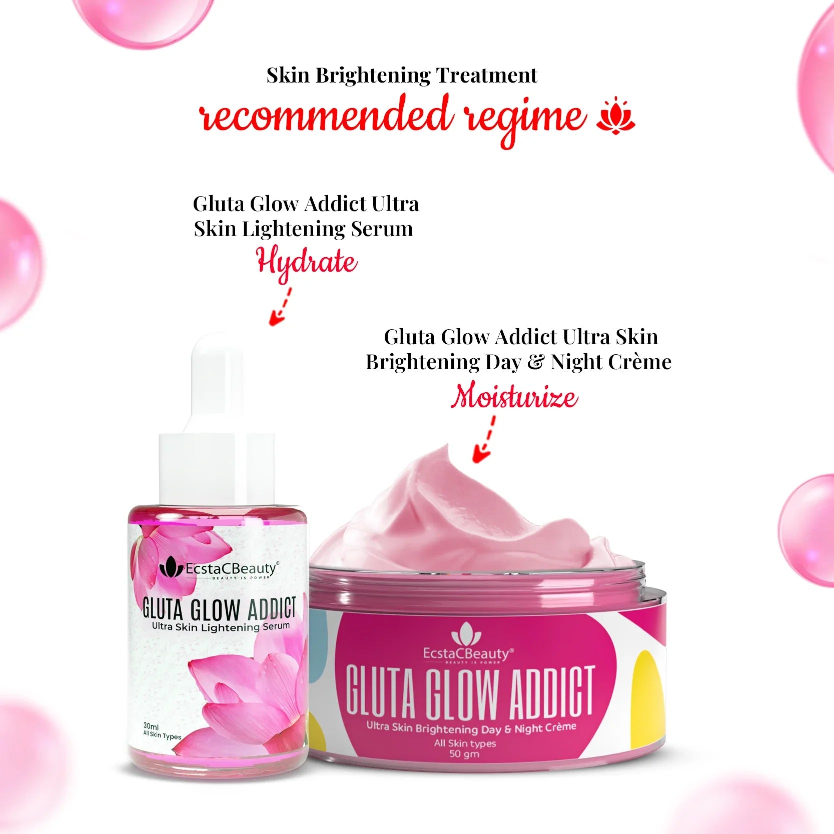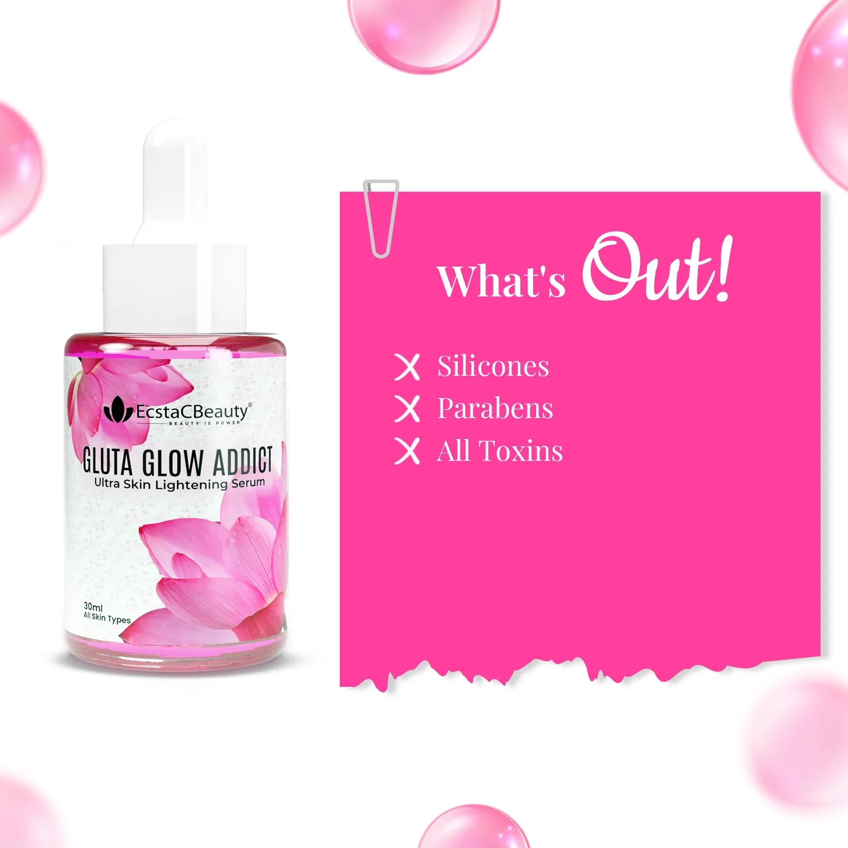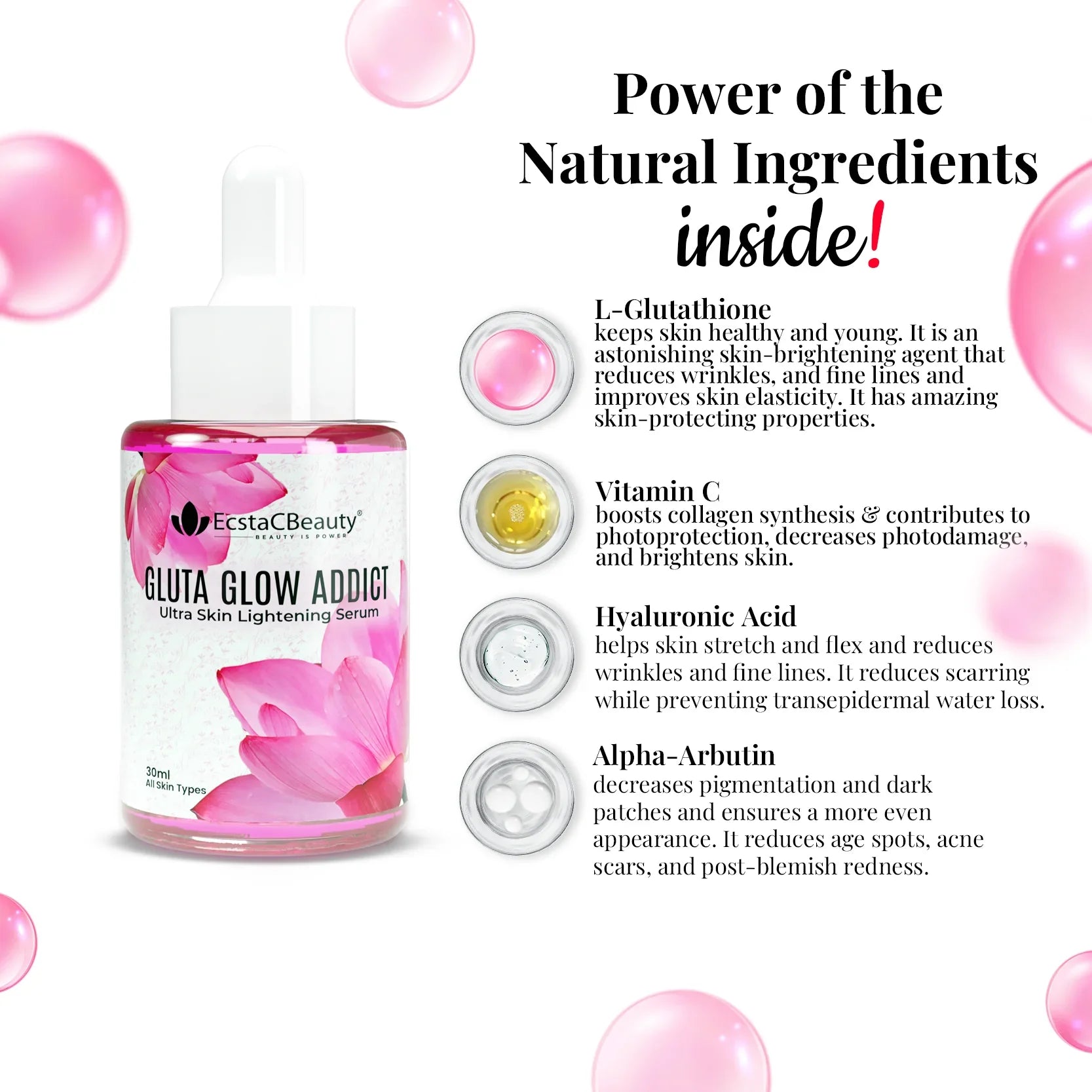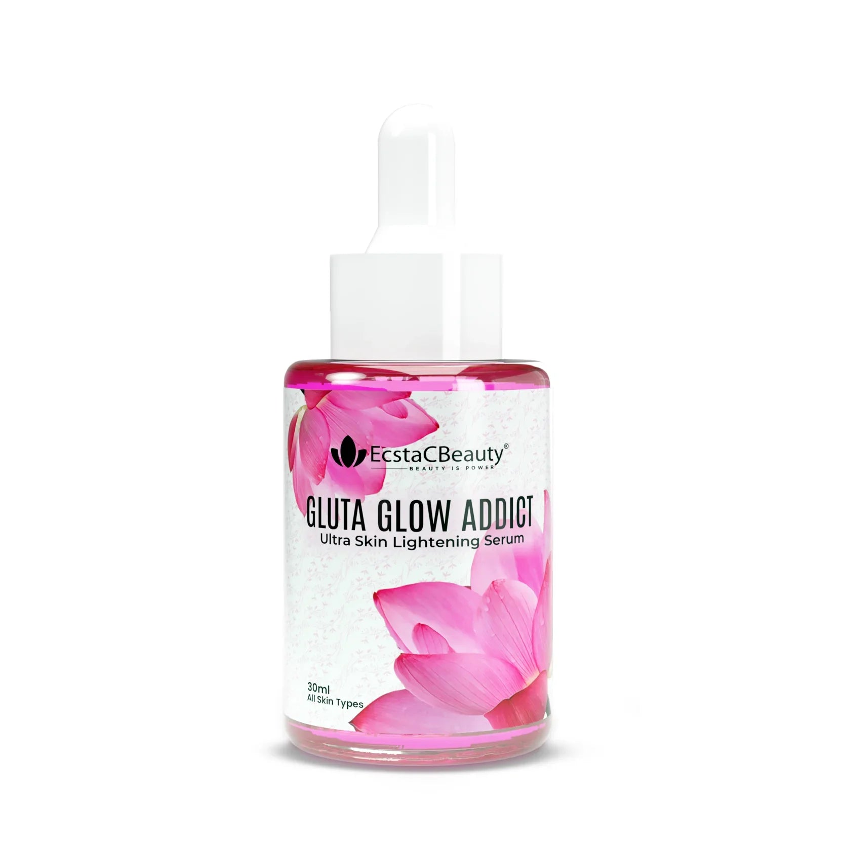 EcstaCBeauty Gluta Glow Addict | Ultra Skin Lightening Serum with Glutathione & Natural Extracts | Brightening & Hydrating Formula | 100% Paraben & Toxin Free | All Skin Types (30ml)