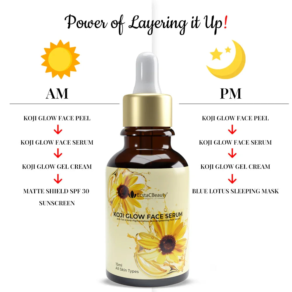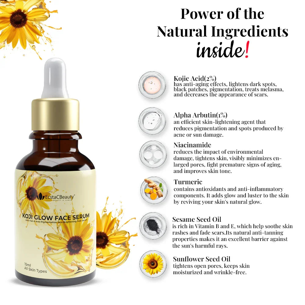 EcstaCBeauty Kojic Glow Face Serum | Anti-Tan & Anti-Pigmentation Skin Brightening Serum | Lightweight & Fast Absorbing | 100% Paraben & Toxin Free | All Skin Types 15ML