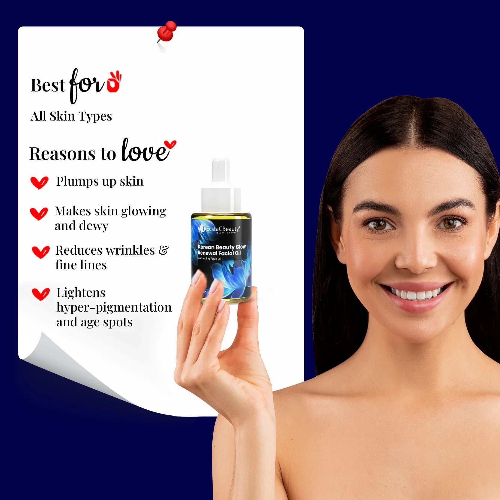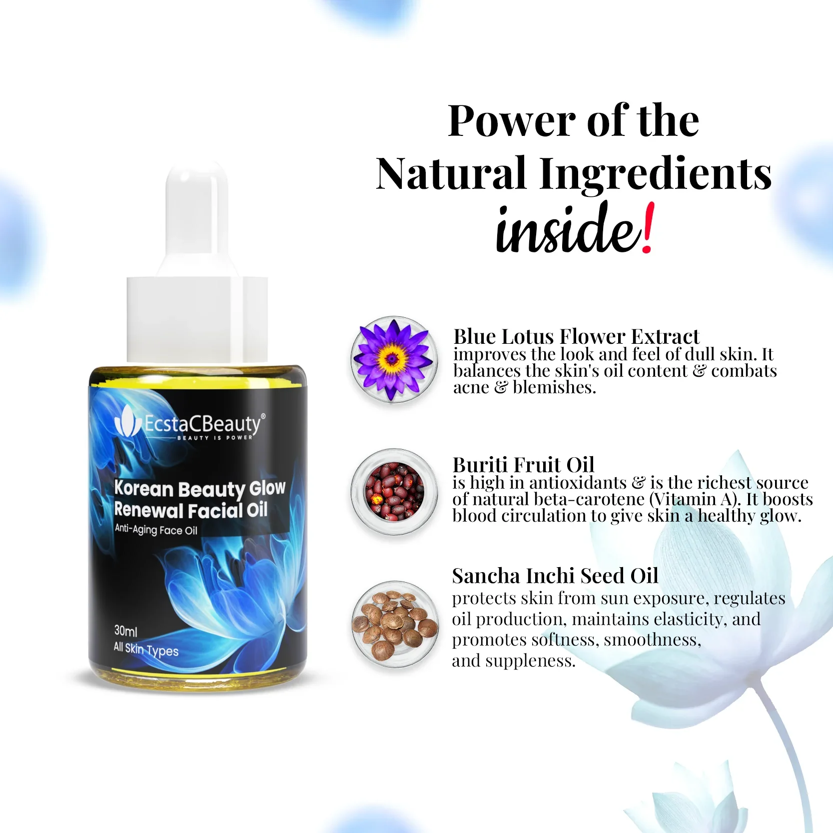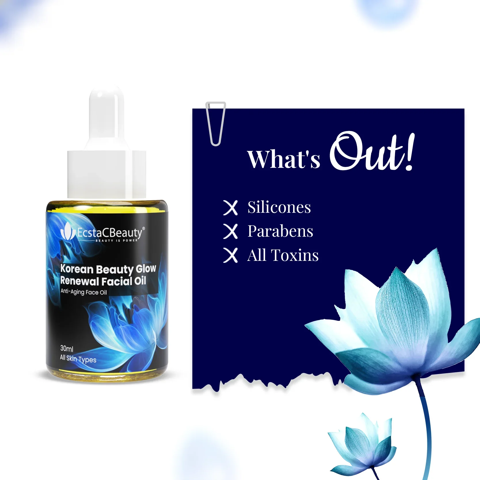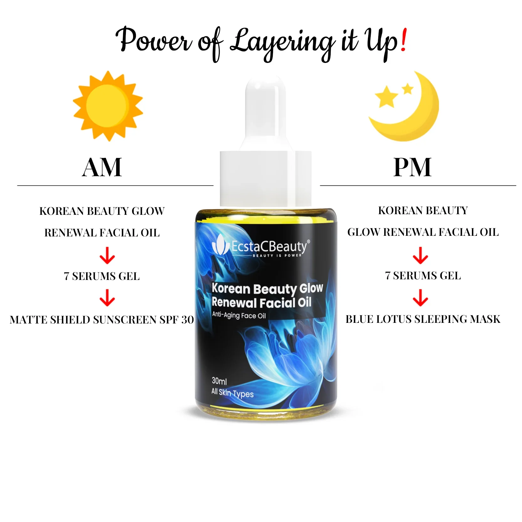 EcstaCBeauty Korean Beauty Glow Facial Oil | Anti-Aging Renewal Face Oil | Deep Hydration & Skin Radiance | Lightweight & Non-Greasy | 100% Paraben & Toxin Free | All Skin Types (30ml)
