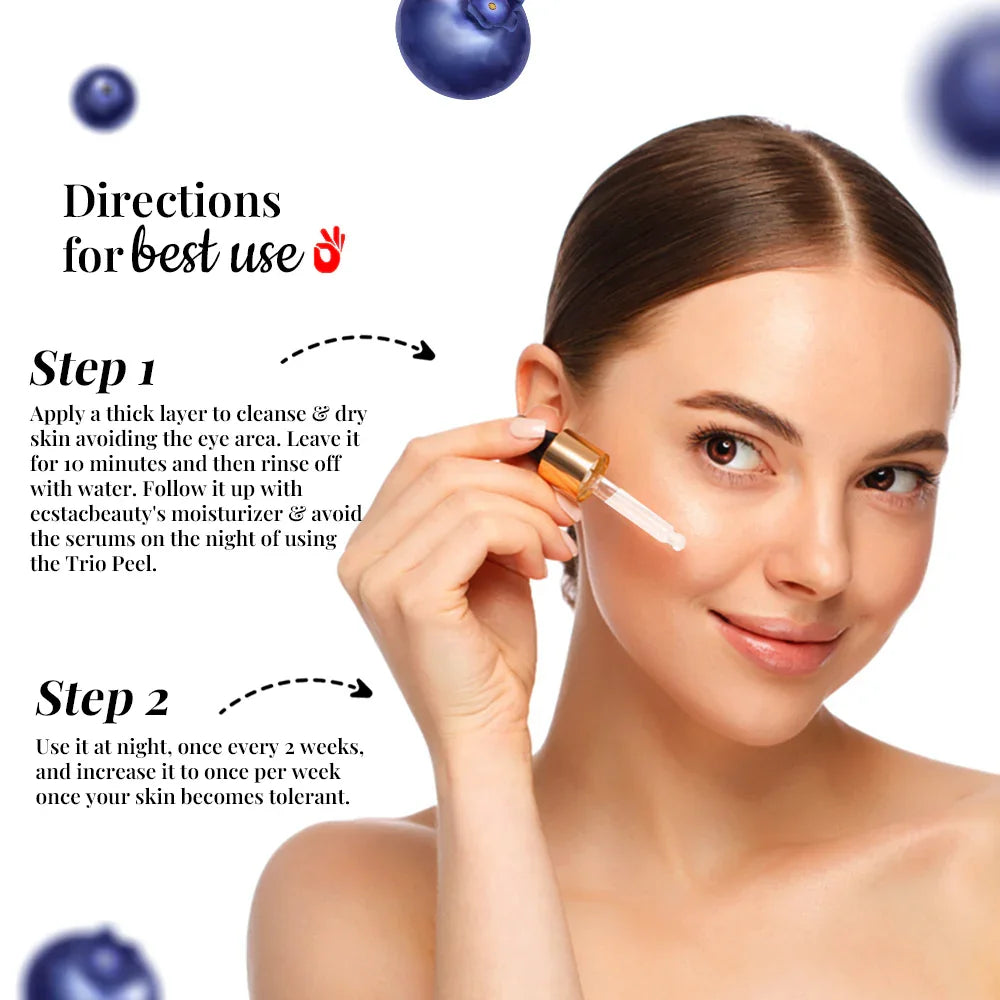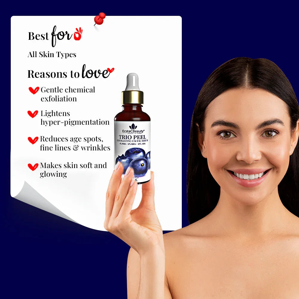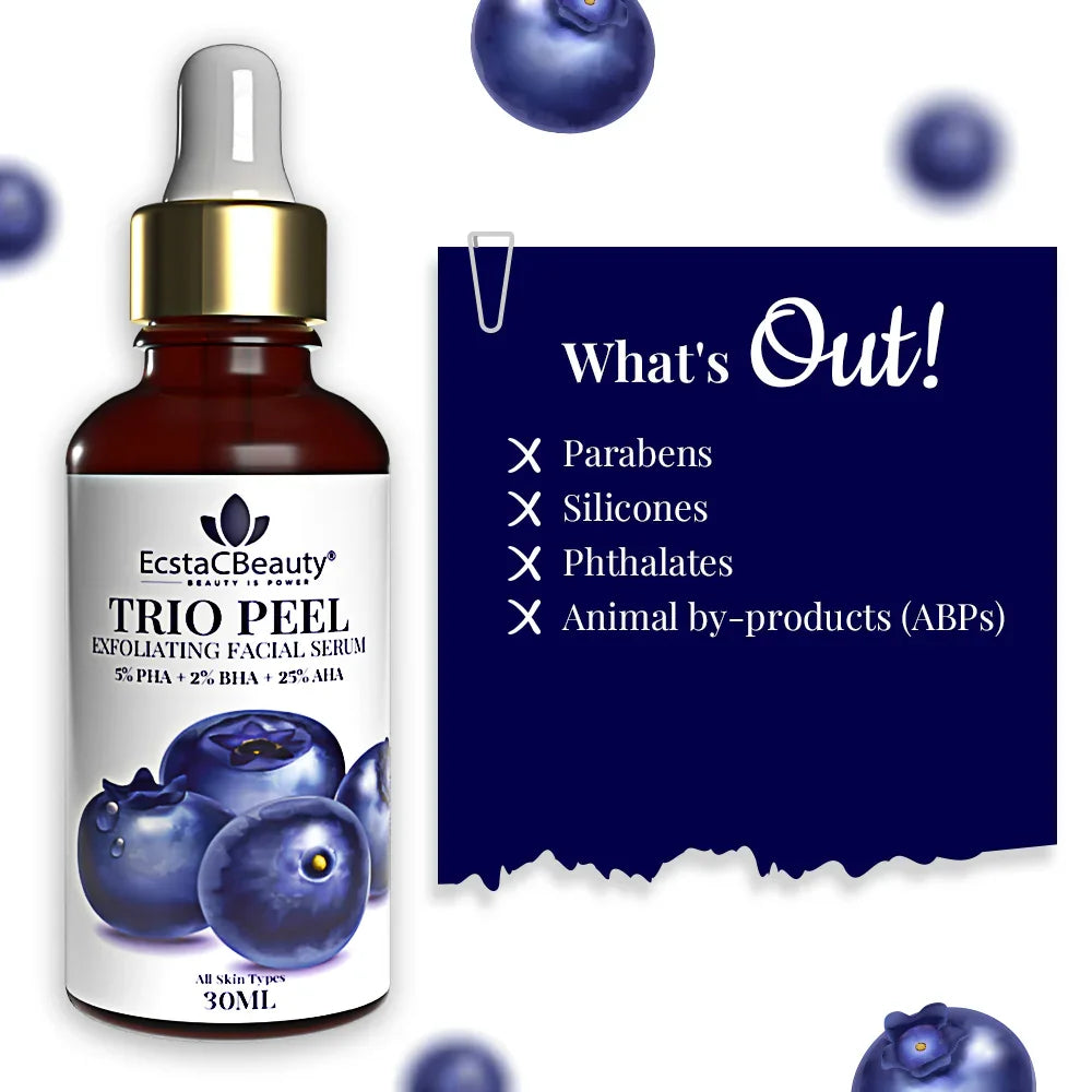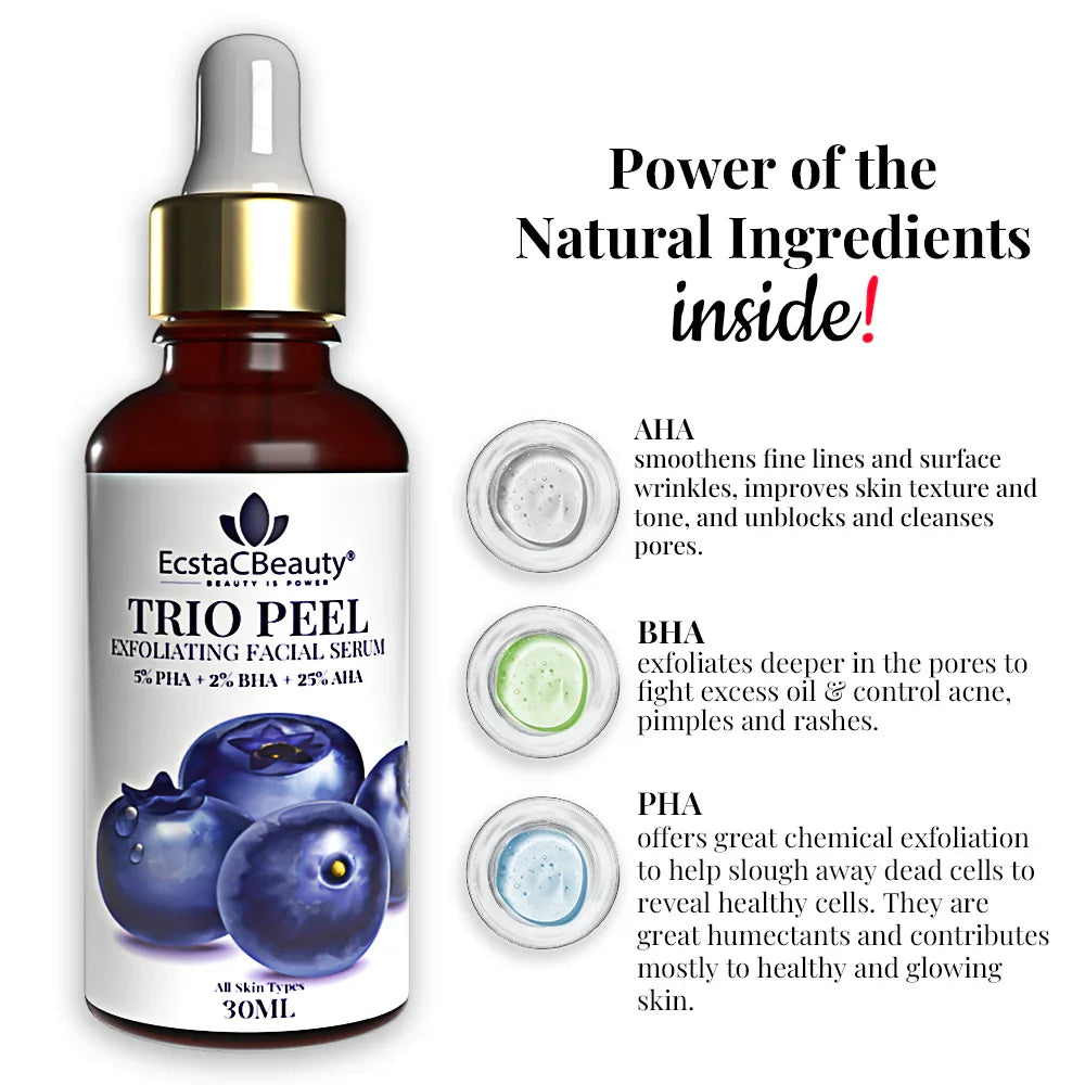 EcstaCBeauty Trio Peel Exfoliating Facial Serum | 5% PHA + 2% BHA + 25% AHA | Gentle Yet Effective Chemical Peel for Smoother Skin | Removes Dead Skin & Unclogs Pores | All Skin Types (30ML)