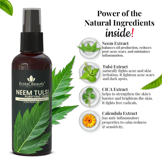 The EcstaCBeauty Neem Tulsi Purifying Face Mask is a powerful blend of neem and tulsi, two of nature’s most potent purifying ingredients, known for their antibacterial, antifungal, and detoxifying properties. This face mask helps to deeply cleanse the skin by removing excess oil, dirt, and impurities, making it an ideal solution for those struggling with acne, blackheads, and clogged pores. The natural antibacterial properties of neem help combat breakouts, while tulsi soothes inflammation and redness, leaving your skin feeling fresh, clean, and revitalized. Perfect for all skin types, this purifying face mask works especially well for oily and acne-prone skin, as it helps control sebum production while maintaining the skin’s natural moisture balance. Regular use of this mask can help prevent acne, fade blemishes, and improve overall skin texture, giving you a clearer and healthier complexion. The gentle yet effective formula ensures that your skin is detoxified without causing irritation, making it suitable for even sensitive skin. This powder-based mask is available in 50g and 100g packs, allowing for easy customization based on your skin’s needs. To use, simply mix the required amount with rose water, yogurt, or aloevera gel, apply an even layer to your face, and leave it on for 10-15 minutes before rinsing with lukewarm water. Use it 2-3 times a week for best results and experience naturally glowing, purified, and refreshed skin. The EcstaCBeauty Neem Tulsi Purifying Face Mask is a must-have for those looking for an all-natural, chemical-free solution to combat acne, detoxify the skin, and restore its natural glow. Whether you opt for the 50g pack for a travel-friendly option or the 100g pack for long-term skincare benefits, this face mask ensures that your skin stays healthy, refreshed, and breakout-free with every use.